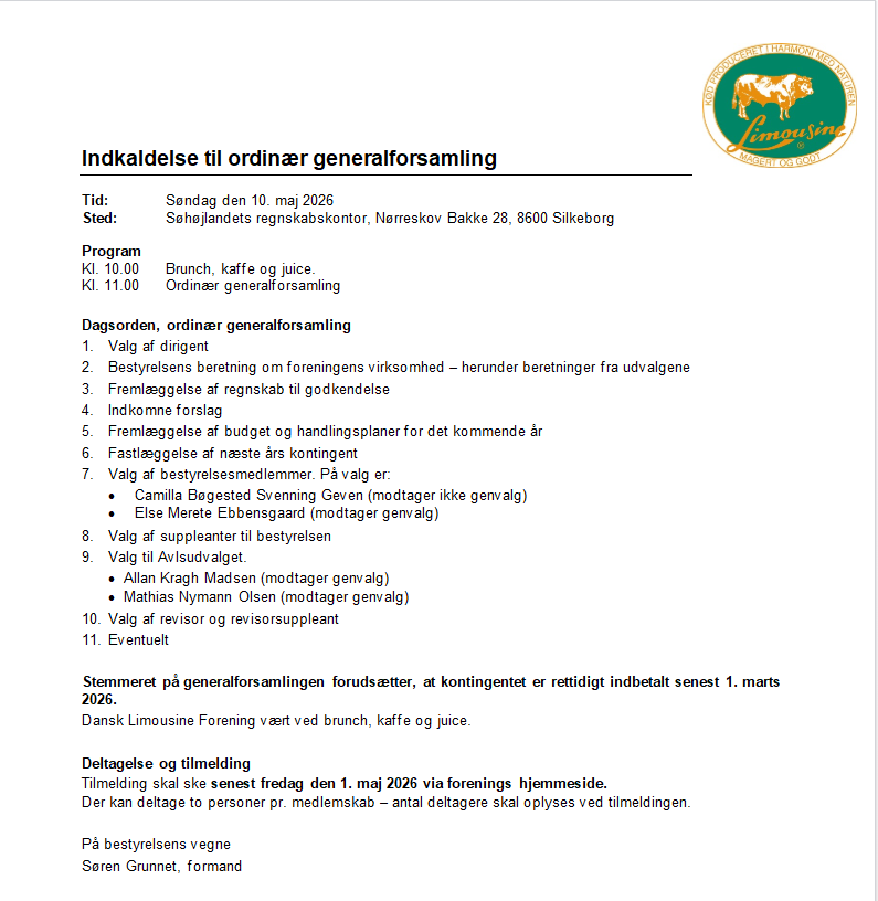 Indkaldelse til generalforsamling 10. maj (opdateret?