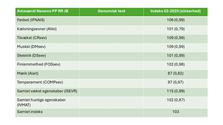 Anbefales til kvier pga højt fødselsindeks med høj sikkerhed